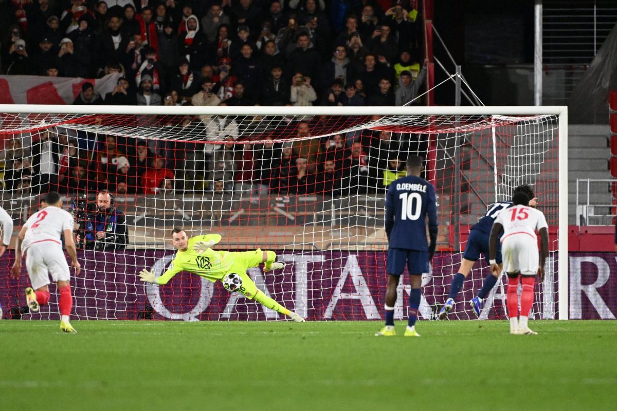 Réaction immédiate du PSG : Kvara pique le ballon à Faes qui rate son contrôle, il va jusque dans la surface et le Belge fait faute, penalty (21e) ! Vitinha s’élance et rate, Köhn repousse à ras de terre la frappe croisée et puissante (22e) !!! Rien ne va côté Paris et Doué part s’échauffer, vraisemblablement parce qu’il y a un blessé côté parisien. Le jeu est arrêté parce que Barcola a secoué Vanderson et Dembélé doit sortir, touché au mollet (26e). La soirée est calamiteuse pour le PSG…
