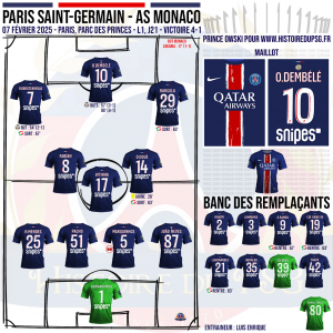 saison 2024 2025 feuille de match J21 PSG Monaco