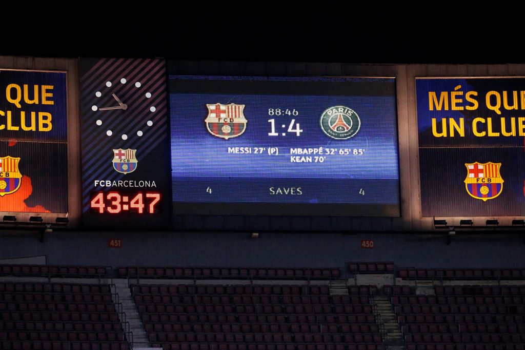 Buteurs : Messi (27e) pour Barcelone Mbappé (32e, 65e et 85e) et Kean (70e) pour Paris