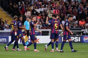 L’équipe de Barcelone :Szczesny – Koundé, E. Garcia (Christensen 86′) , Cubarsi, Martin (Balde 72′) – Pedri (Bernal 79′), De Jong – Yamal, Olmo (Casado 72′), Rashford (Lewandowski 72′) – Ferran Torres Entraîneur : Hans-Dieter Flick