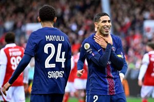 – 15 040 spectateurs environ. Buts : Hakimi 29 & 39′, Doué 90+6′. Arbitre : M. Pignard.