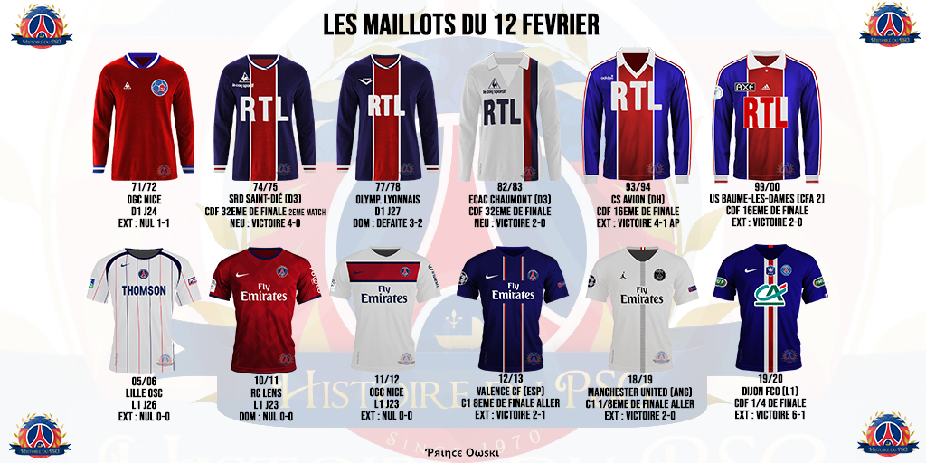 13 matchs ont été disputé par le PSG un 12 février, 6 en championnat et 7 en coupe (5 en Coupe de France et 2 en Ligue des Champions), pour un bilan de 7 victoires (dont une après prolongation), 5 nuls (dont 4 0-0 de suite) et une défaite, face à Lyon en 1978. 25 buts ont été marqués (dont 6 à Dijon en 2020) et 7 encaissés.