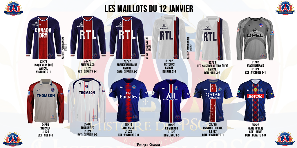 Bilan équilibré pour le Paris-SG un 12 janvier avec, sur les 11 matchs disputés (6 officiels et 5 amicaux), 4 victoires pour- autant de revers et 3 nuls, 19 buts marqués pour 19 encaissés.