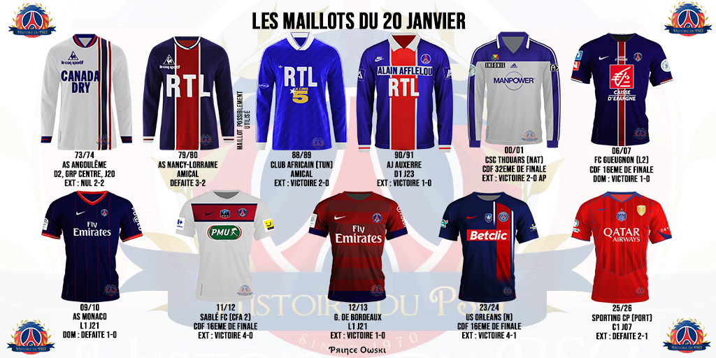 Les joueurs du Paris Saint-Germain ont été sollicités 10 fois, depuis 1970, un 20 janvier. Ils ont disputé 8 matchs officiels (4 en championnat et 4 en Coupe de France) et 2 amicaux.