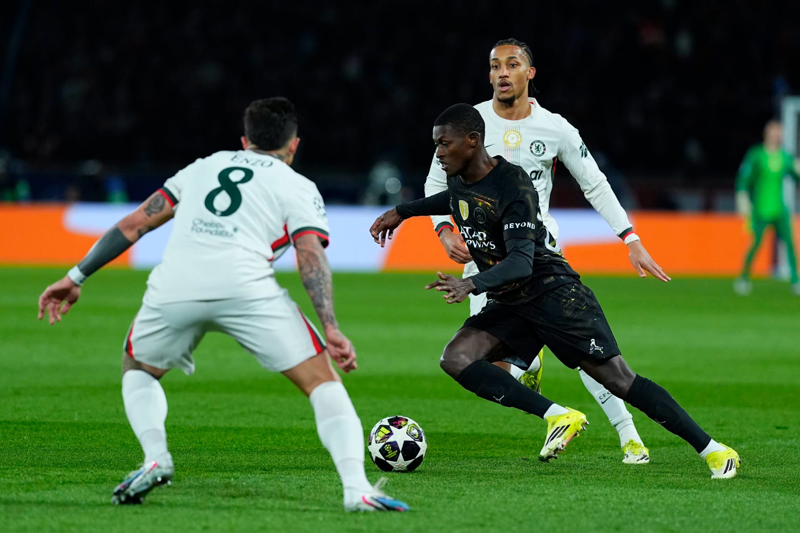 Doué réussit une grosse action côté droit, il déborde Chalobah mais se fait reprendre par Caicedo dans la surface (57e). Chelsea égalise encore : transversale ratée de Nuno Mendes, Neto récupère devant Doué, il part vers le but, dépose Marquinhos et centre en retrait pour Enzo Fernandez qui crucifie Safonov (2-2, 57e) !