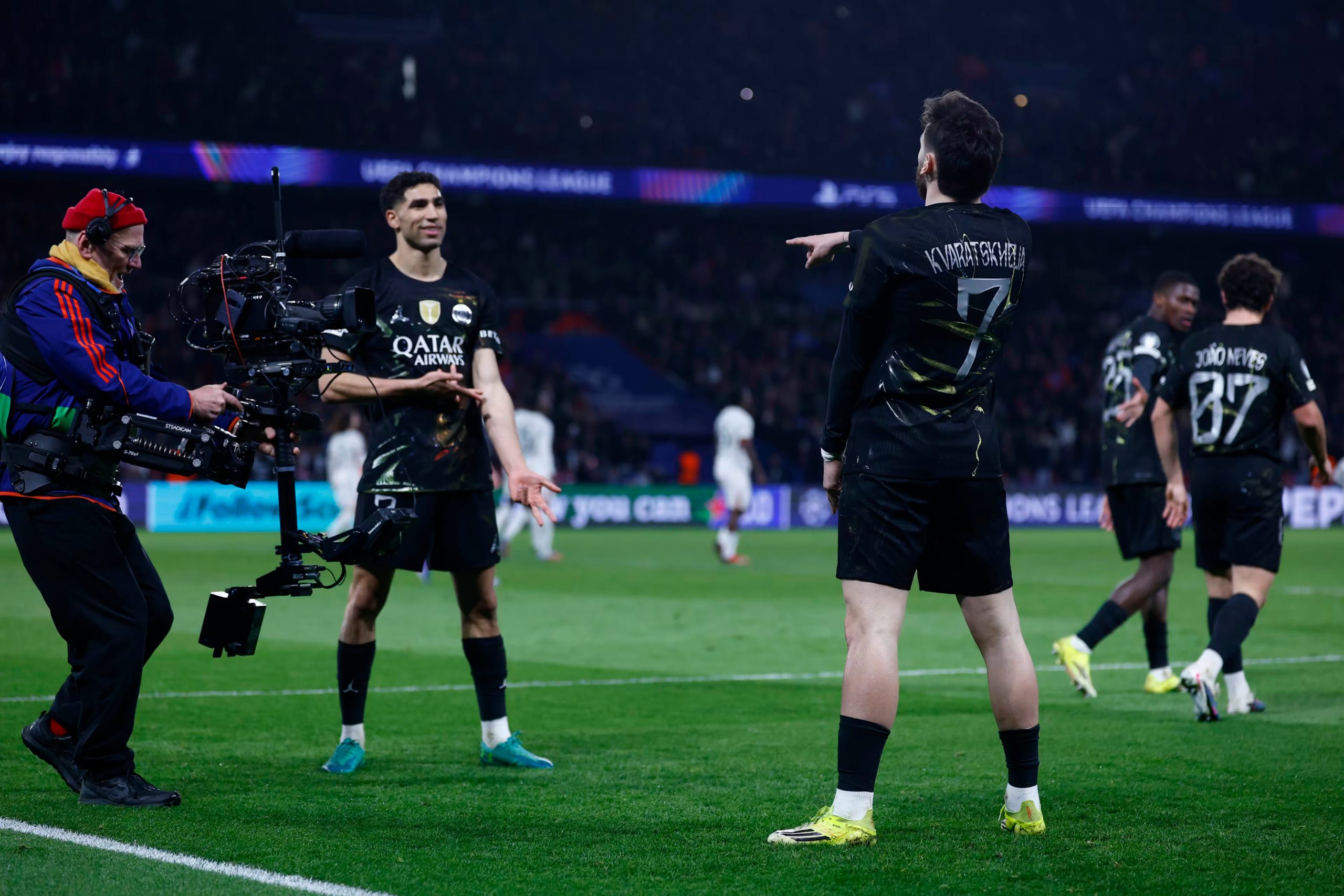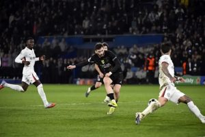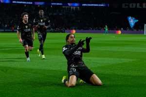 Dans le cadre des huitièmes de finale aller de Champions League, le PSG recevait Chelsea ce mercredi soir et les Parisiens, bien qu’ayant donné deux buts aux Londoniens, ont su s’imposer de belle manière. Barcola a ouvert le score rapidement, Gusto a égalisé vite, Dembélé a illuminé le match mais Fernandez a encore ramené les Blues à l’heure de jeu. Vitinha a ensuite profité d’une erreur du gardien pour marquer le but du 3-2 à un quart d’heure de la fin. C’est un Kvara déchaîné qui a marqué les deux buts du PSG en fin de partie, qui ira à Londres avec trois buts d’avance !