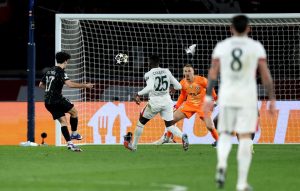 Le PSG marque finalement un cinquième but d’une action folle : Lee lance Vitinha qui décale Hakimi lancé, il va jusqu’à la surface puis centre en retrait pour Kvara, la reprise n’est pas géniale mais cela va au fond quand même (5-2, 94e) !