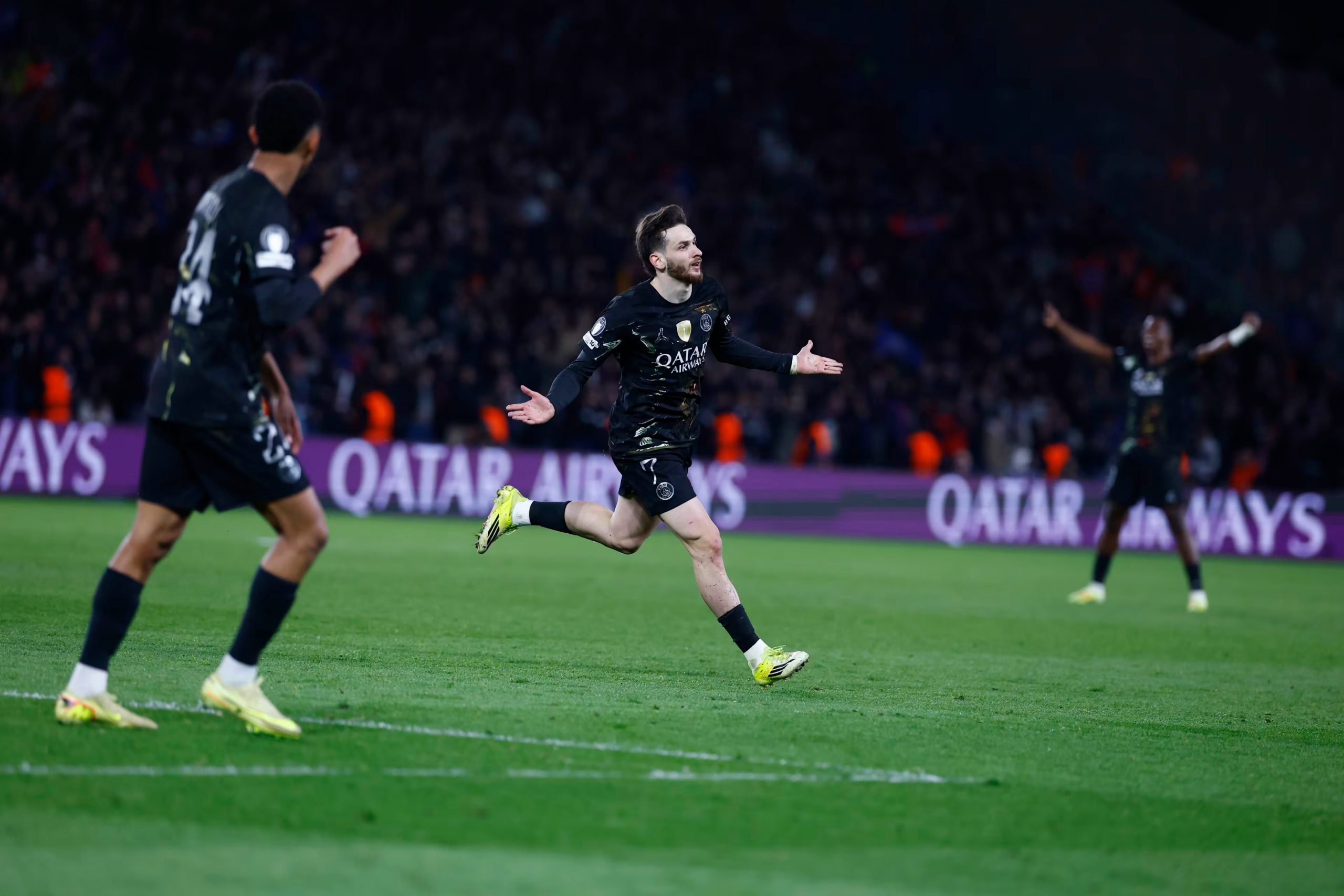 Alors que le match s’était équlibré peu à peu, Chelsea a une grosse occasion avec une frappe dans la surface superbement repoussée par Safonov, Hakimi relance et trouve Doué devant lui, il lance Dembélé au but, il feinte la passe vers Hakimi puis dribble et frappe victorieusement 2-1, 40e) !