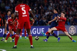 A cinq derrière, Liverpool donne le coup d’envoi avec un jeu long osé… mais raté (1e). Paris tente de construire mais les Reds pressent haut et fort. Hakimi fait un appel intéressant sur la gauche puis trouve Dembélé qui est repris devant la surface (3e). C’est une véritable attaque/défense qui se met en place face à un bloc des Reds archi défensif (5e). Liverpool joue une touche longue bien dégagée mais impossible pour Paris de partir en contre avec un gros repli (8e).