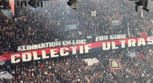 La banderole qui fera polémique. (A. Mounic L’Équipe)