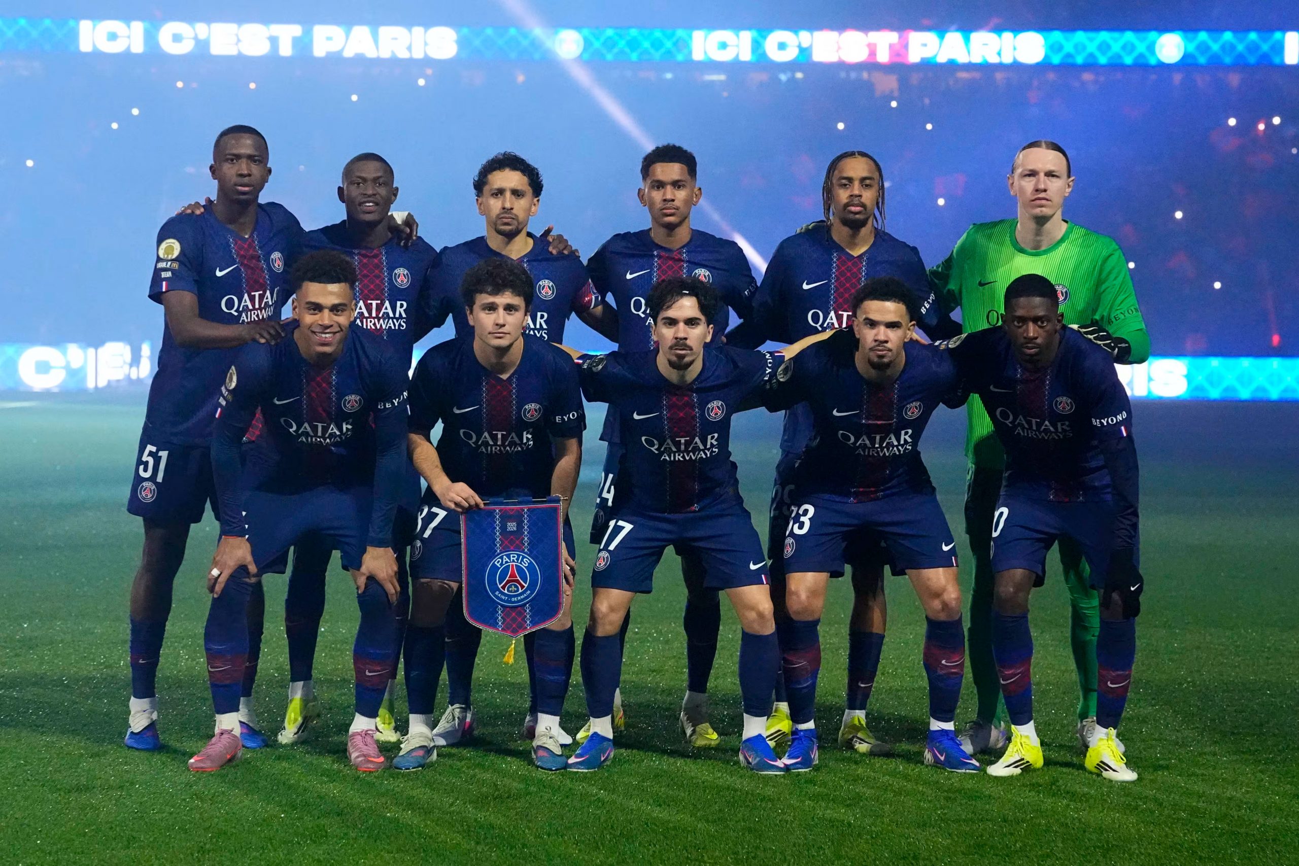 L’équipe du PSG : Safonov – Zaïre-Emery (Hernandez, 75e) , Marquinhos (c), Pacho, Mendes – Neves, Vitinha, Mayulu (Dro, 75e) – Doué (Kvaratskhelia, 62e), Dembélé (Ramos, 75e), Barcola (Lee, 68e).  Entraîneur : Luis Enrique.