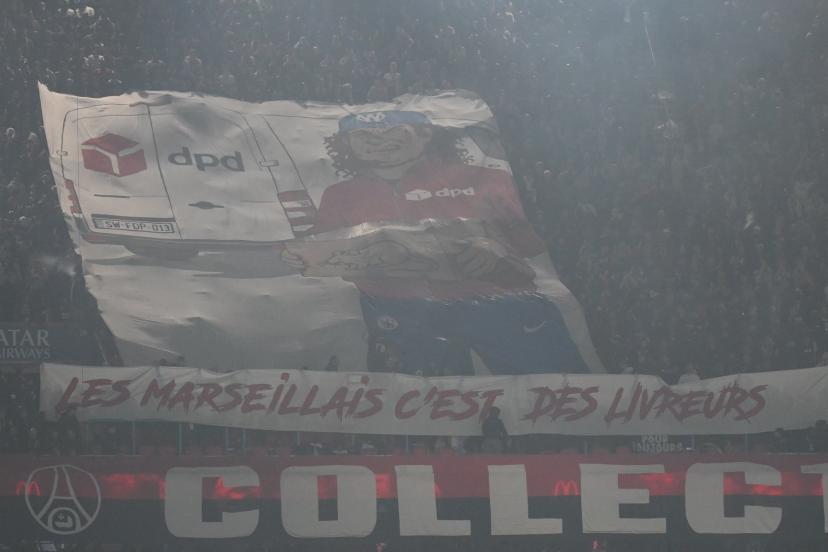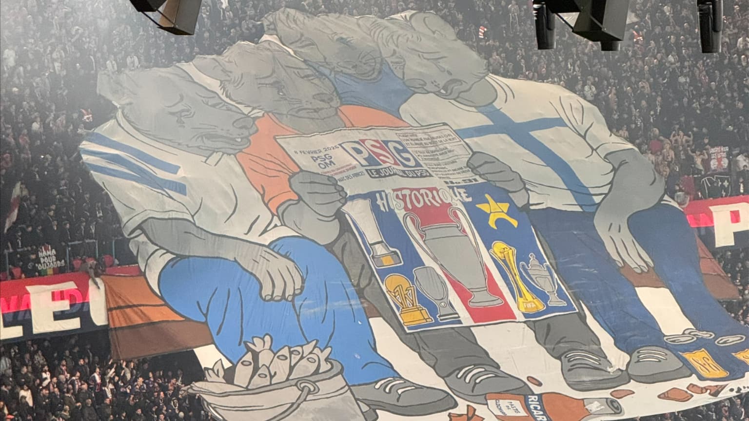 La banderole qui fera polémique. (A. Mounic L’Équipe)