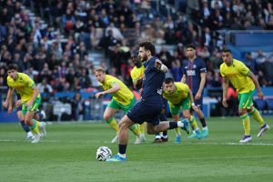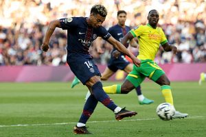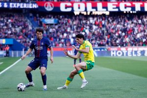 Le PSG est bien lancé et Dembélé fait parler sa magie sur un contre, il trouve Doué en remise qui lui remet, il frappe excentré du gauche et Lopes dégage en corner (18e) ! Archi-dominé, le FCN tente de réagir et Zaïre-Emery dégage mal, Lepenant reprend et obtient un corner (20e). Contre toute attente, Nantes égalise sur un coup-franc excentré mal dégagé, Leroux est là pour envoyer une demi-volée victorieuse (1-1, 22e). Le VAR vérifie un possible hors-jeu de Leroux sur le but et c’est très long… Il est annulé mais le hors-jeu est en fait sur la remise au départ !