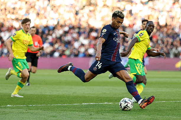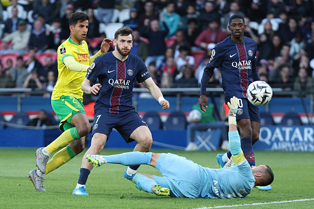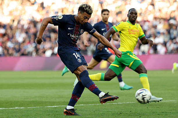 Nantes est galvanisé malgré le refus et Zabarnyi doit s’employer côté gauche d’un tacle rageur mais un autre corner arrive, finalement dégagé (26e). Le PSG remet le pied sur le ballon mais peine à s’approcher de la surface (31e). Sur un long ballon, Abline peut tirer de 20m mais Safonov se couche bien (36e). Aors que Marquinhos intercepte une bonne attaque de Nantes, le PSG repart de l’avant et Dembélé sert Hakimi qui s’insère dans l’axe, il sert Doué devant lui qui envoie une frappe sublime en pleine lucarne (2-0, 37e) !