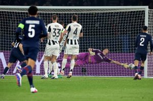 Ce penalty raté ne perturbe pas Paris qui reprend sa marche en avant (7e). Paris marque sur l’action qui suit : Marquinhos joue long, Dembélé récupère au milieu du terrain et trouve Kvara côté droit, il avance puis Vitinha à l’entrée de la surface, il feinte un défenseur puis frappe dans le petit filet (1-0, 8e) !