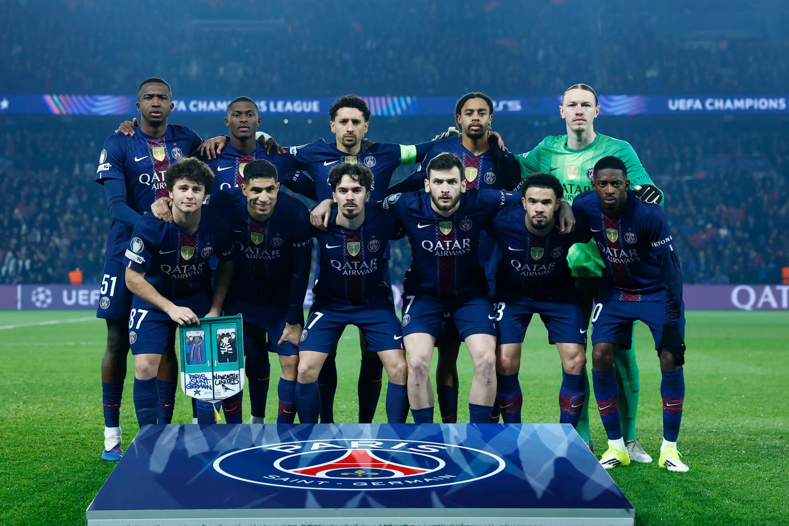 L’équipe du PSG : Safonov – Hakimi, Marquinhos, Pacho, Mendes – Neves (Mbaye 87′), Vitinha, Zaïre-Emery (Mayulu 87′) – Kvaratskhelia (Doué 22′), Dembélé, Barcola (Ramos 70′) Entraîneur : Luis Enrique.