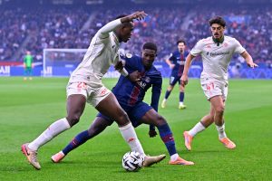 Dembélé tente un nouveau centre depuis la droite mais Ruiz ne cadre pas au second poteau, une fois de plus (86e). Mendy remonte un terrain complet côté droit puis rate un peu sa frappe. Le PSG tente d’en profiter mais n’obtient qu’un corner qui ne donne rien (90e). Dembélé tente sa chance du gauche depuis la droite mais c’est facilement capté par Diouf (93e). Kvara joue bien un corner à deux puis centre, Ramos coupe de la tête mais Diouf claque la balle. Sur le corner qui suit, Lee tire au premier poteau, Kvara dévie et Gonçalo Ramos coupe de la tête et marque (1-0, 95e) !