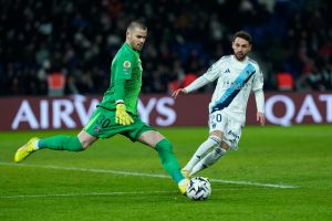 – 47.000 spectateurs environ. Buts : Doué 45′, Geubbels 51′ (P), Dembélé 53′. Arbitre : M. Bastien