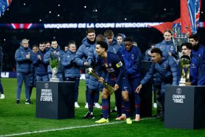 L’équipe du PSG : Chevalier – Zaïre-Emery, Zabarnyi (Marquinhos 70′), Pacho, Nuno Mendes (Hernandez 80′) – João Neves, Vitinha, Ruiz – Dembélé (Ramos 70′), Mayulu (Nsoki 83′), Doué (Barcola 70′) . Entraîneur : Luis Enrique.