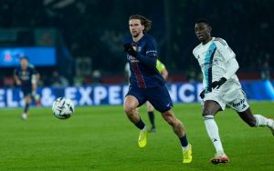 C’est parti, le PFC joue long et rend le ballon (1e). Une bonne récupération de Mayulu permet à Nuno Mendes de se mettre en position de déborder et d’obtenir le premier corner mais celan e donne rien (2e). C’est suivi par la première frappe, via Vitinha aux 20m, cela passe de peu à côté de la lucarne (3e). Le PFC répond par une attaque rapide qui se transforme en corner, facilement repoussé (4e). Peu à peu, Paris pose son jeu et s’approche du but, acculant le PFC (7e). Une longue séquence parisienne se termine par un centre de Nuno Mendes, Trapp capte mais Zaïre-Emery le percute en retard (9e). Le jeu est arrêté, l’Allemand est sonné puis se relève (11e).