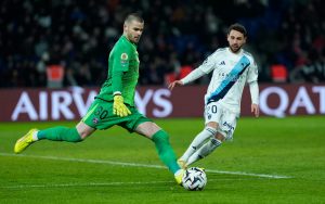 Le match est équilibré et le PSG tente par les côtés, mais le Paris FC défend en bloc et minimise les espaces, forçant Mendes à frapper de loin, et très à côté (16e). Dembélé est trouvé plein axe, il s’enroule autour du défenseur puis accélère, il donne une balle de but à Neves qui tente alors une remise plutôt que de tirer en bonne position (19e). Paris SG tente de jouer le plus haut possible et Doué réussit un petit bijou technique à l’entrée de la surface mais n’obtient pas le penalty qu’il espérait (25e). Mais sur l’action d’après, le même Désiré Doué réussit un double contact en pleine surface et est fauché par le bras du défenseur tombé (26e). Penalty (26e) ! C’est corrigé en coup-franc et Nuno Mendes tire fort dans le mur (29e).