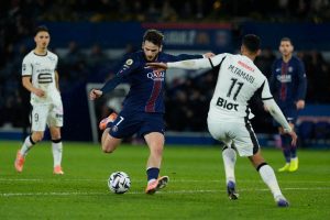 Kvara se balade dans la surface puis frappe, il est contré et reste au sol, touché à la cheville gauche (60e). Il se relève péniblement mais revient après quelques soins (62e). A peine entré, Dembélé a une balle de but sur un centre en retrait de Kvara mais il tire mollement dans les bras de Samba (65e).
