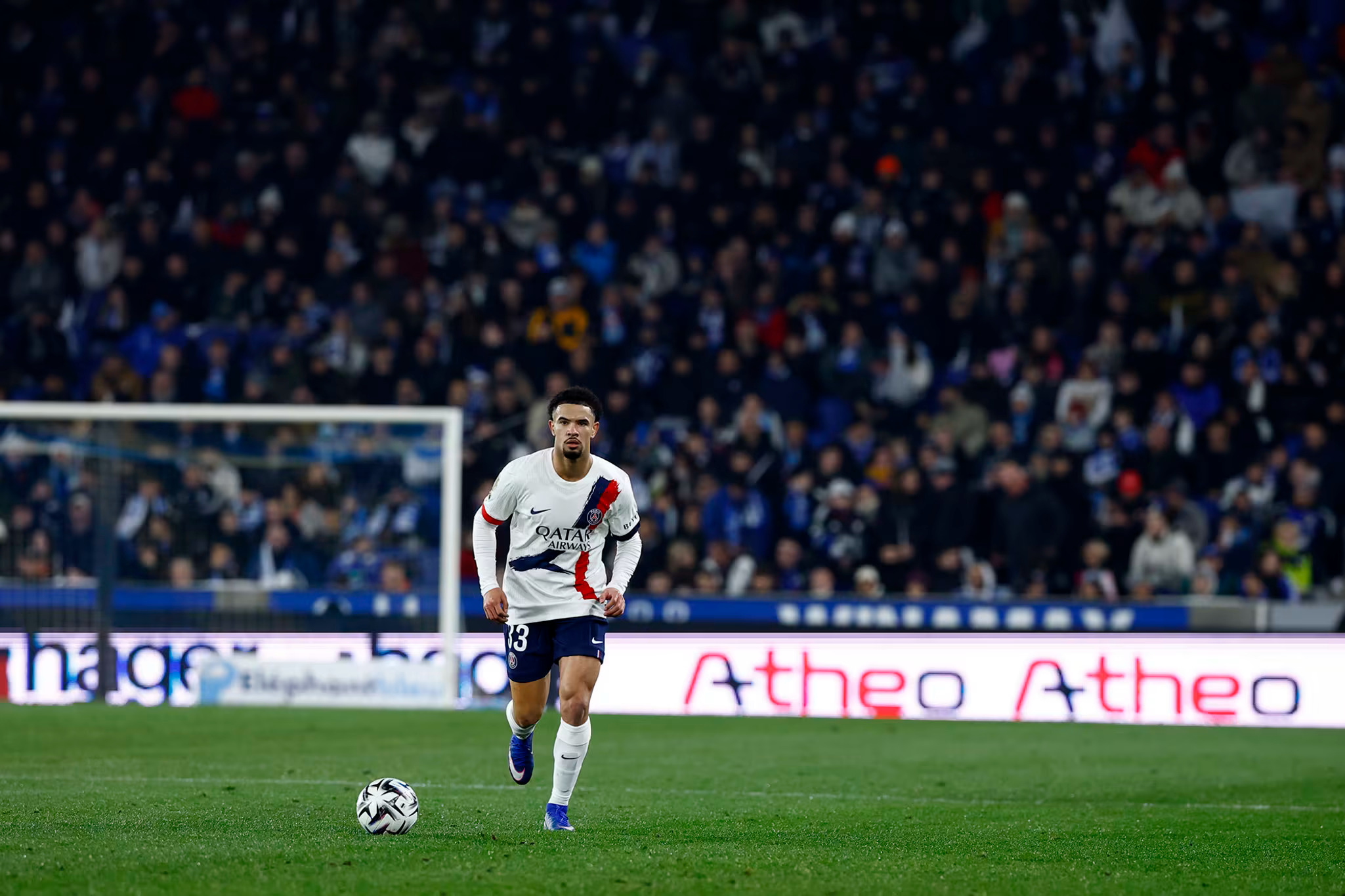 Alors que les ultras locaux font leur habituelle grève de début de match, le PSG donne le coup d’envoi, joue long sans succès puis construit depuis l’arrière (2e). Paris récupère un ballon très haut, Barcola est trouvé mais isolé côté gauche, son centre est raté (3e). Un second pressing paye encore mais Vitinha rate sa passe vers Mbaye (4e). Mbaye percute à droite et trouve Neves adns la surface qui frappe mais est contré (5e).