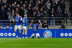 L’équipe de Strasbourg : Penders – Doué, Sarr, Doukouré, Chilwell (Amo, 82e) – El Mourabet, Ouattara – Diego Moreira, Enciso (R. Luis, 72e), Godo – Panichelli Entraineur : Gary O’Neil