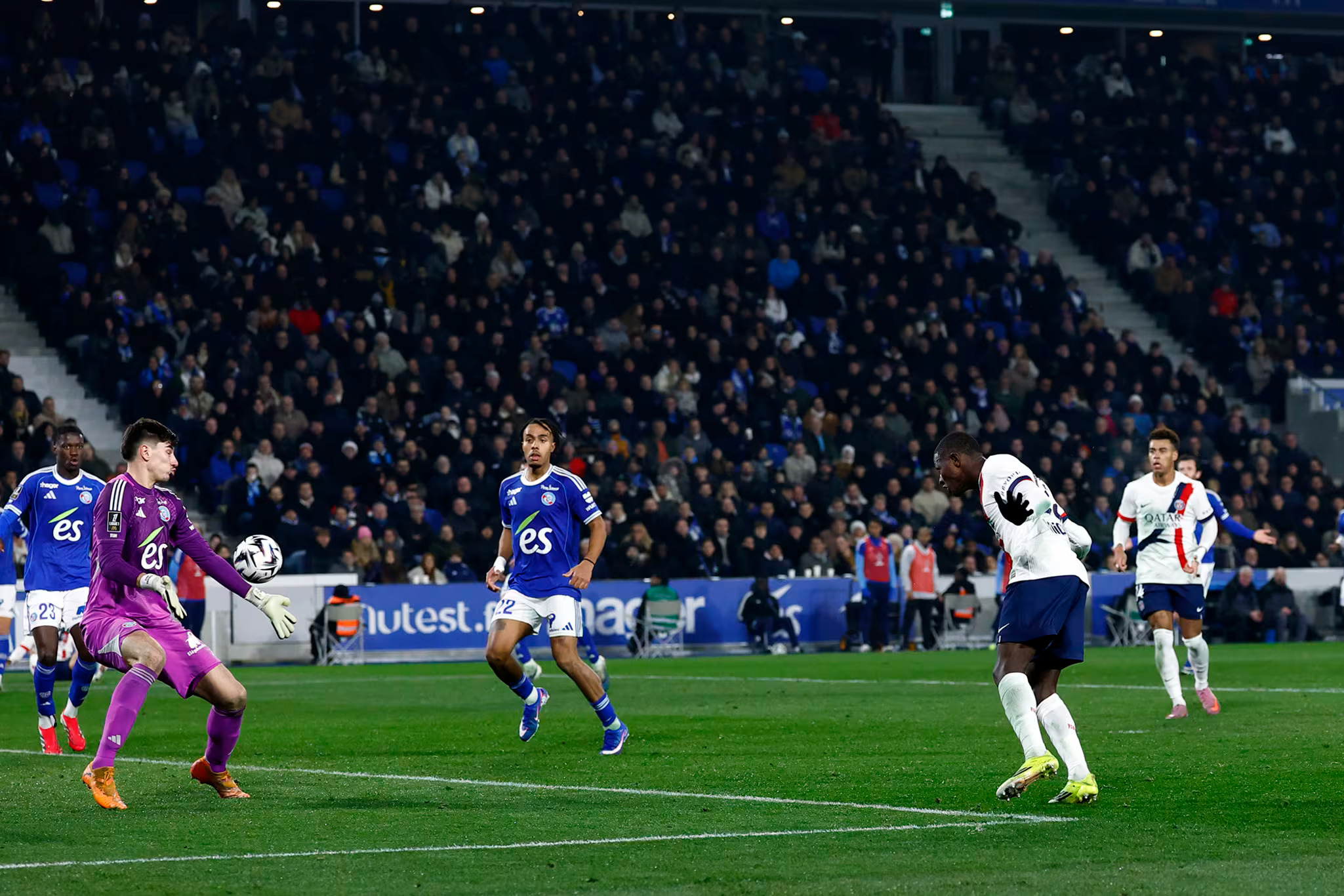 Le PSG joue maintenant dans le camp de Strasbourg et Lee sollicite Penders d’une frappe enroulée, bien captée (64e). Le Racing sort enfin de son camp sur un rpessing après une mauvaise relance de Safonov mais le Russe se rattrape sur le corner qui a suivi (67e). Strasbourg est désormais acculé et le PSG contnie de pousser mais la défense des locaux tient bon (70e).